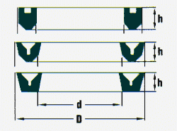 | Typ | Profil manžety | Provedení | Maximum | Rozměr manžety Minimální a maximální D - d - h |